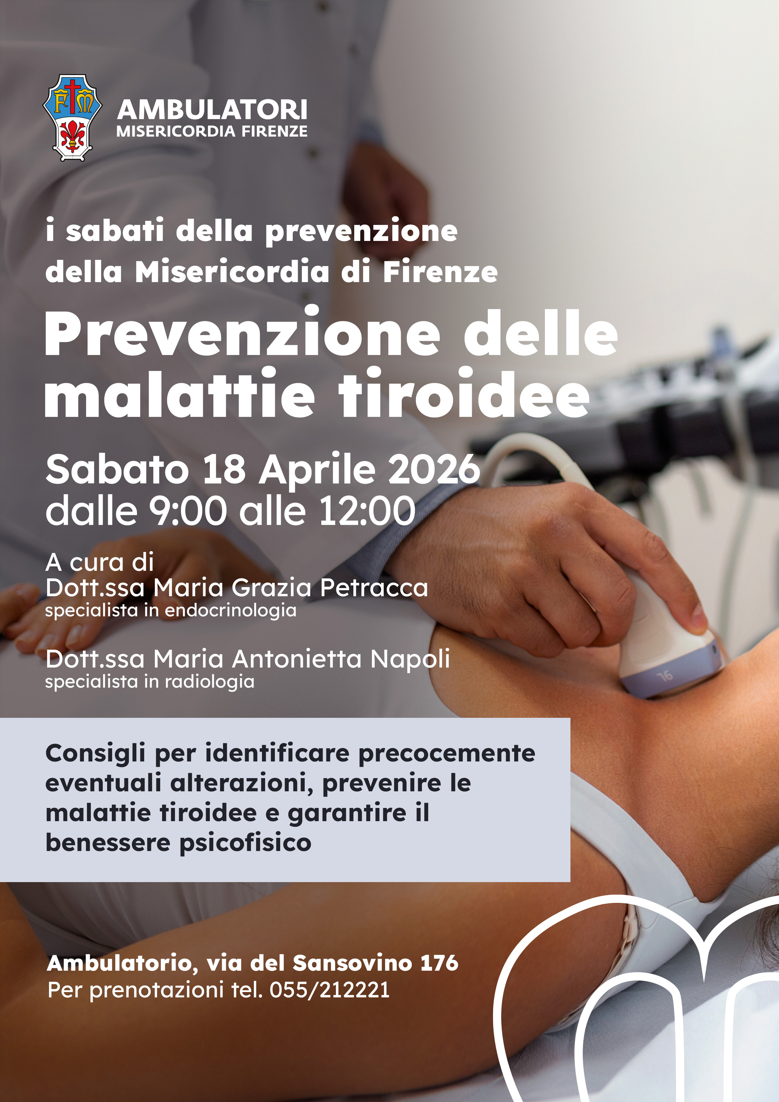 Dalle 09:00 alle 12:00 nel presidio di via del Sansovino, 176, a cura della dottoressa Maria Grazia Petracca specialista in endocrinologia e della dottoressa Maria Antonietta Napoli specialista in radiologia
